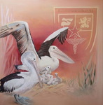 2026Pelikaan met jongen symboliseert naastenliefde, mededogen en zelfopoffering.